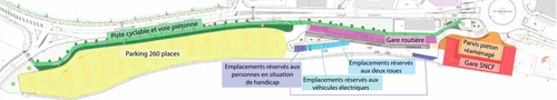 la revalorisation du parvis de la gare, avec la création d’un cheminement piéton confortable, une accessibilité accrue avec notamment des places de parking réservées aux personnes à mobilité réduite ;